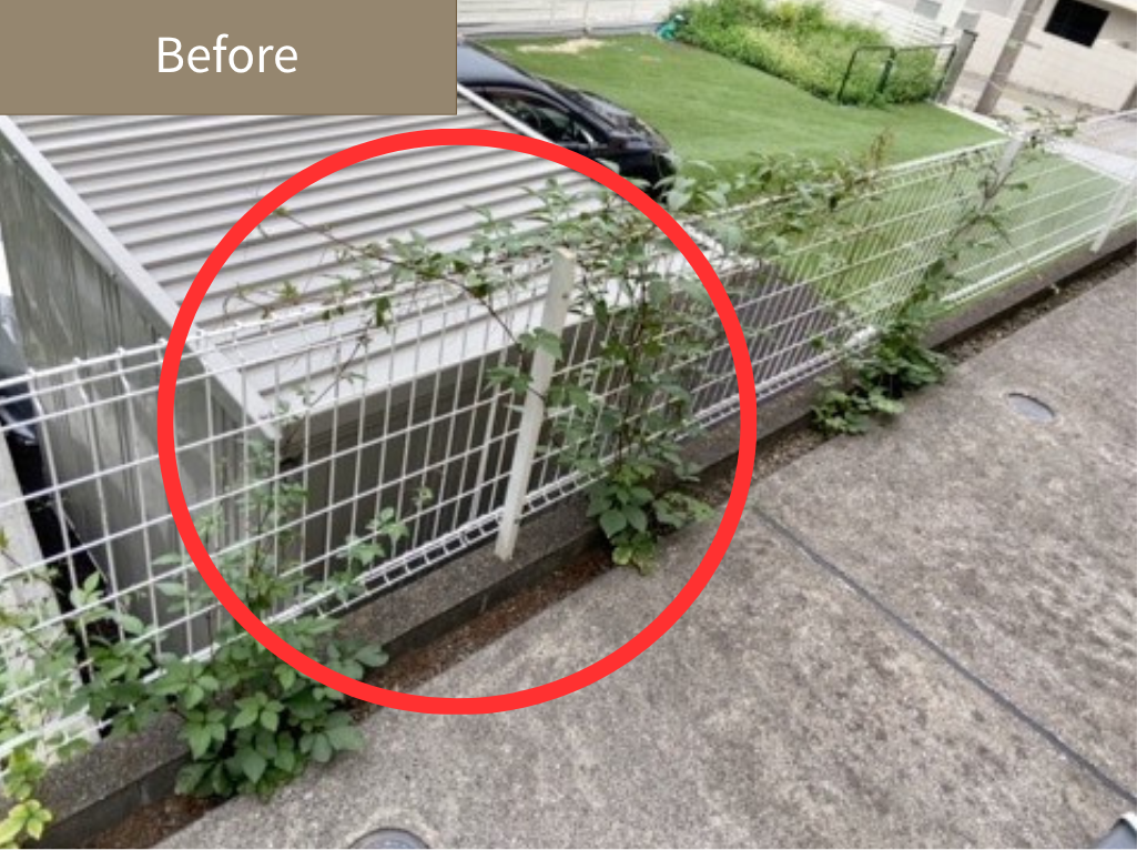 例月通り巡回していると、フェンスに伸びて絡まったツタを発見しました。